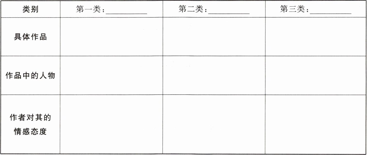 | 作者对其的情感态度 | 尊敬、感激、怀念 | 批判、讽刺、厌恶 | 同情、惋惜、愧疚 |