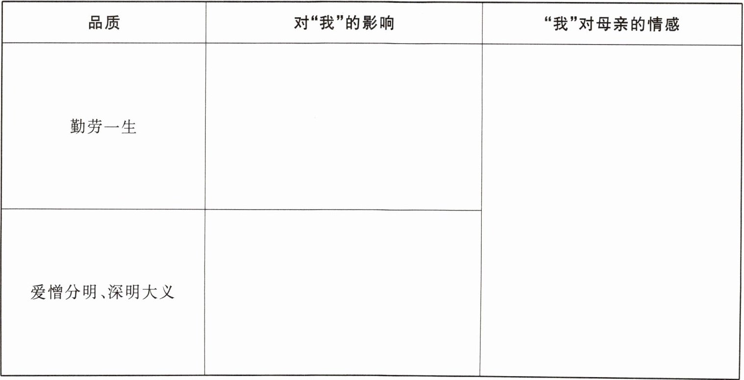 |爱憎分明、深明大义|支持“我”参加革命,影响“我”的革命道路和思想|敬佩、怀念|