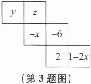 3. 如图所示是一个正方体的表面展开图,若正方体中相对的面上的数相等,则$x + y + z$的值是(