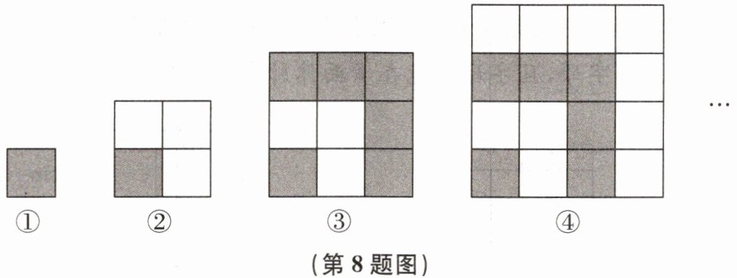 8. 在数学中,数与形之间可以相互转化.小华利用下列图形来总结了连续奇数的和的规律,如图: