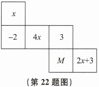 22. 如图所示是一个正方体的平面展开图,标注了字母M的是正方体的正面,如果正方体的左面与右面标注的式子相等.