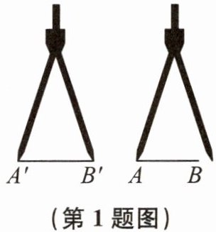 1. 如图,用圆规比较两条线段A'B'和AB的长短,A'B'和AB的大小关系是