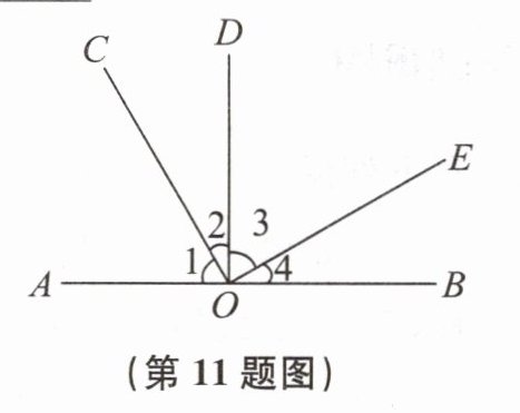 11. 如图,点A,O,B在同一条直线上,$\angle AOD= \angle DOB= \angle COE= 90^{\circ}$.