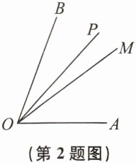 2. 如图,OM是$∠AOB$的平分线,OP是$∠MOB$内的一条射线,已知$∠AOP比∠BOP大30^{\circ}$,则$∠MOP$的度数是