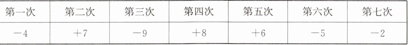 2. 某检修小组开车从A地出发,在东西方向的马路上检修线路.如果规定向东行驶为正,向西行驶为负,一天中七次行驶里程(单位:km)记录如下表所示.