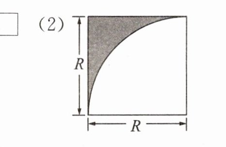 (2) 由图可知,该图形是一个边长为 $R$ 的正方形,空白部分是一个半径为 $R$ 的四分之一圆。阴影部分的面积等于正方形的面积减去四分之一圆的面积,即 $R^2 - \frac{1}{4}\pi R^2$。