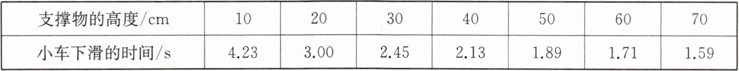 |小车下滑的时间/s|4.23|3.00|2.45|2.13|1.89|1.71|1.59|