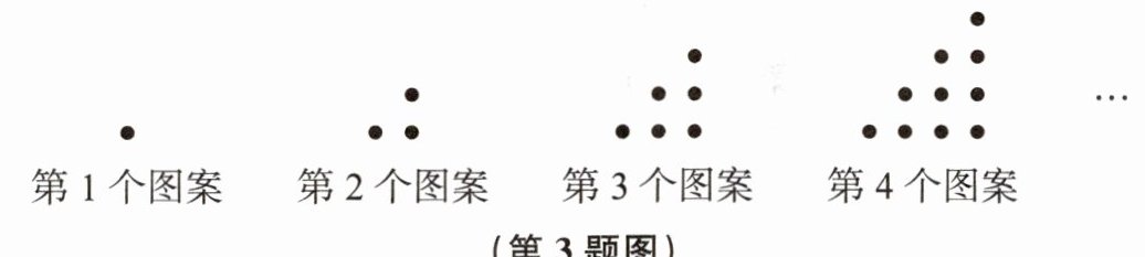 3. 用黑色棋子按如图所示的规律拼图案,其中第1个图案中有1枚棋子,第2个图案中有3枚棋子,第3个图案中有6枚棋子……按此规律排列下去,第6个图案中棋子的数量为 (