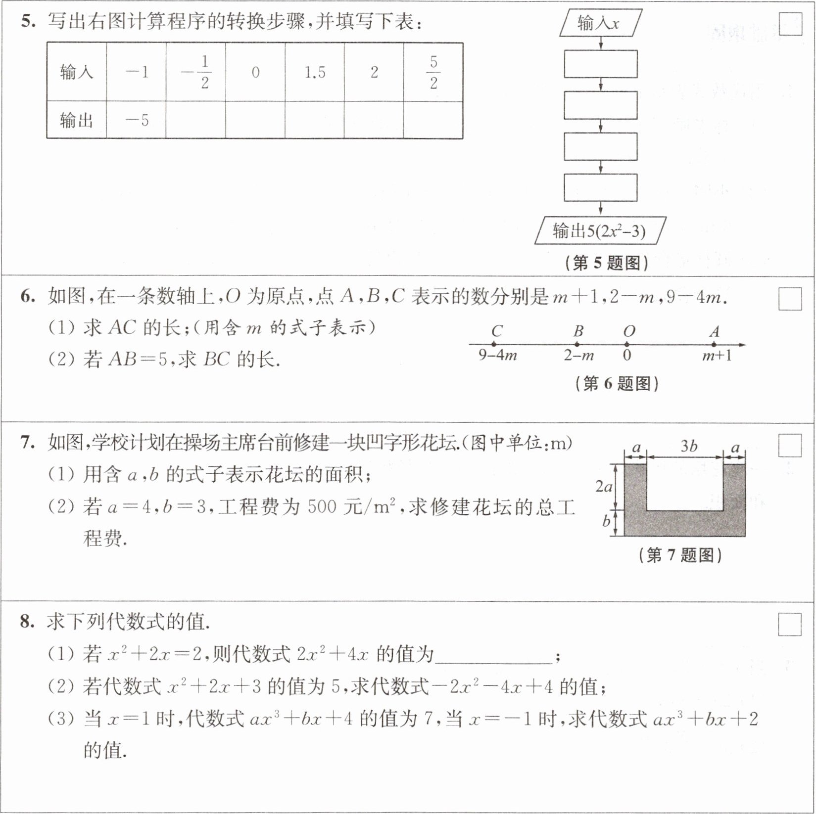 5. 转换步骤:输入$x$,计算$3x - 2$,输出结果;表格见上述填写。