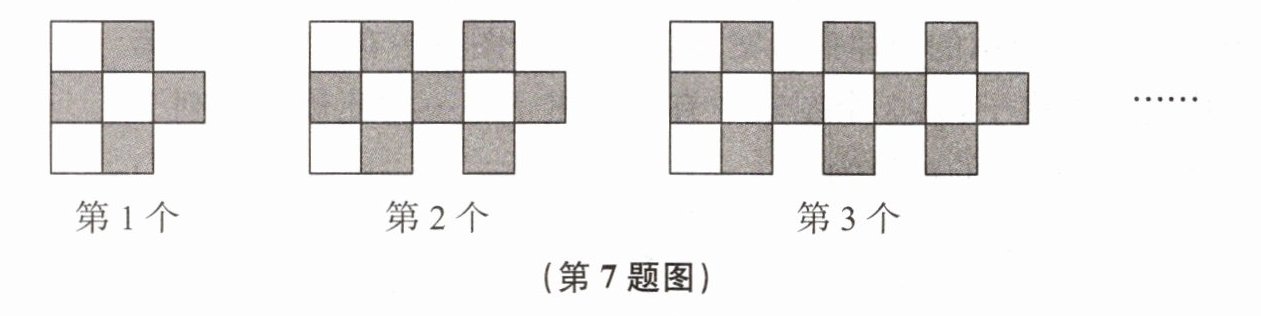 7. 如图,用若干大小相同的黑白两种颜色的正方形瓷砖,按下列规律铺成一列图案,则第100个图案中黑色瓷砖比白色瓷砖多