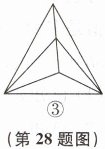 28. 【操作要求】小明在等边三角形内取一定数量的点,连同等边三角形的3个顶点,以这些点为顶点剪三角形,要求剪出最多的小三角形.