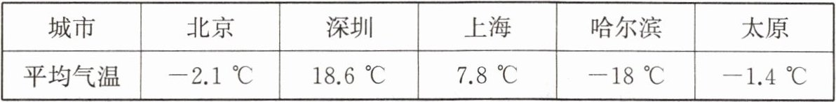 4. 下表是2024年2月我国几座城市的平均最低气温,其中平均最低气温最低的城市是 (