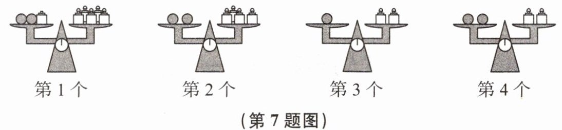 7. 如图,下列四个天平中,相同物体的质量是相等的.已知第1个天平是平衡的,则后面三个天平中,仍然平衡的有(