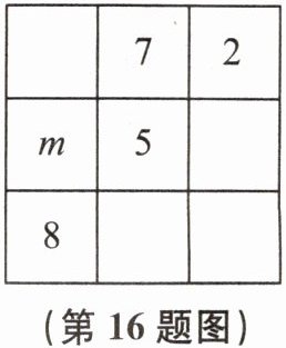 16. 幻方是古老的数学问题,我国古代的《洛书》中记载了最早的幻方——九宫图.将数字1~9分别填入如图所示的幻方中,要求每一横行、每一竖列以及两条斜对角线上的数字之和都相等,则$m$的值为