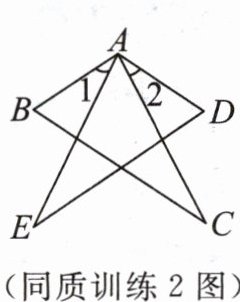 同质训练 2 如图,AC = AE,∠C = ∠E,∠1 = ∠2。求证:△ABC ≌ △ADE.