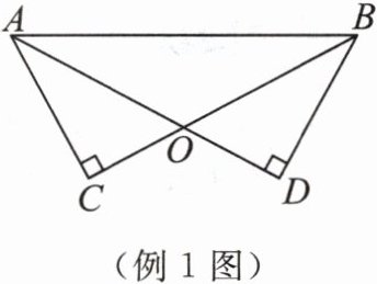 例1 如图,$ AD,BC $ 相交于点 $ O,AD = BC,\angle C = \angle D = 90^{\circ} $.求证:$ AO = BO,CO = DO $.