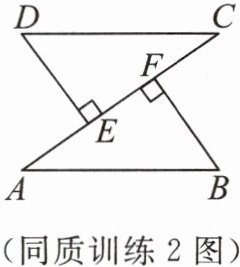 同质训练2 如图,$ AB = CD,E,F $ 在边 $ AC $ 上,$ \angle AFB = \angle CED = 90^{\circ},AE = CF $.