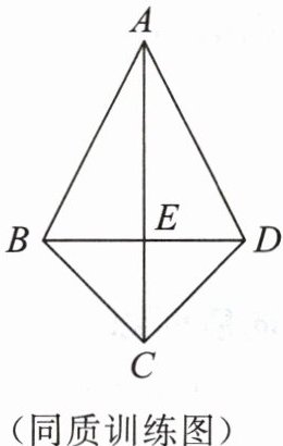 同质训练 课本 $ P35 $ 讨论:如图,$ AB = AD $,$ CB = CD $,$ AC $,$ BD $ 相交于点 $ E $.你能在图中找到哪些相等的角?如何证明?