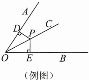 例 如图,点$P在\angle AOB$的内部,$PD\perp OA$,$PE\perp OB$,垂足分别为$D$,$E$,$PD = PE$.那么点$P在\angle AOB$的平分线上吗?