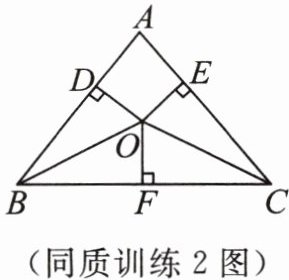 同质训练 $2$ 如图,在$\triangle ABC$中,$O为\angle ABC$,$\angle ACB$平分线的交点,$OD\perp AB$,$OE\perp AC$,$OF\perp BC$,垂足分别为$D$,$E$,$F$.