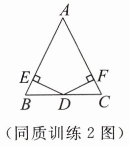 同质训练 2 如图,在$\triangle ABC$中,$AB = AC$,$D是BC$的中点,$DE\perp AB$,$DF\perp AC$,$E$,$F$为垂足.求证:$DE = DF$.