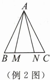 例 2 如图,在$\triangle ABC$中,$AB = AC$,点$M$,$N在BC$上,且$AM = AN$.求证:$BM = CN$.