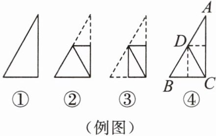 (3) 把纸片展开,连接 $ CD $,得到图④.