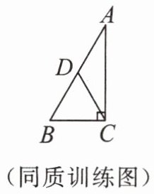 同质训练 如图,在 $ Rt \triangle ABC $ 中, $ \angle ACB = 90^{\circ} $, $ CD $ 与 $ AB $ 相交于点 $ D $, $ CD = BD $. 求证: $ CD = \frac{1}{2}AB $.