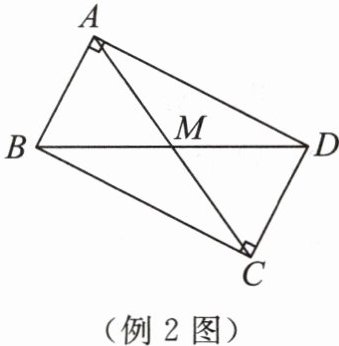 例 2 如图,在四边形 $ ABCD $ 中, $ \angle BAD = \angle BCD = 90^{\circ} $, $ M $ 是 $ BD $ 的中点,连接 $ AM $, $ CM $. 求证: $ AM = CM $.