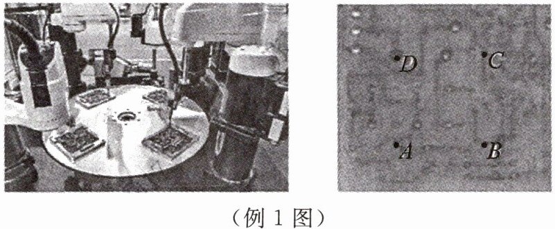 例 1 如图,焊孔 $ A $,$ B $,$ C $,$ D $ 恰好为一个正方形的四个顶点,正方形的边长为 4。为了使机械手把电子元器件准确地插入焊孔,在线路板上建立合适的平面直角坐标系,确定四个焊孔的坐标。