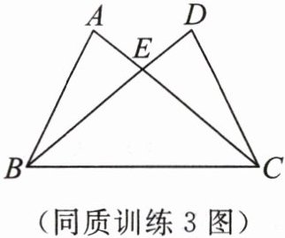 同 质 训 练 3 如图,已知 $\triangle ABC \cong \triangle DCB$,$AC$ 与 $BD$ 相交于点 $E$。若 $\angle ACB = 40^{\circ}$,求 $\angle BEC$ 的度数。