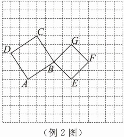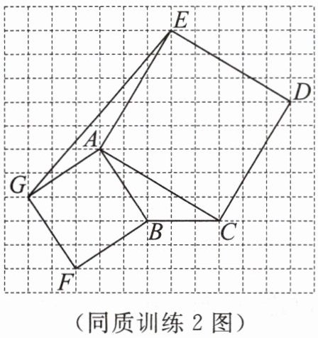 同质训练 2 如图,在网格中,每个小正方形的边长均为 1,正方形 $ AGFB $ 和正方形 $ ACDE $ 的顶点都在格点上。