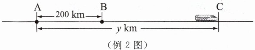 (5)如图,$ A $,$ B $ 两站相距 200 km,一列火车从 $ B $ 站出发以 120 km/h 的速度驶向 $ C $ 站,火车离 $ A $ 站的路程 $ y $(单位:km)随行驶时间 $ t $(单位:h)的变化而变化。