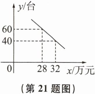 21. 为促进新旧功能转换,提高经济效益,某科技公司近期研发出一种新型高科技设备,每台设备成本价为25万元,经过市场调研发现,该设备的月销量y(单位:台)和销售单价x(单位:万元)满足如图所示的一次函数关系.