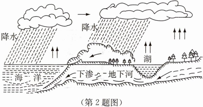 )A.水循环是地面的水蒸发变成水蒸气上升,再液化成水降下的过程