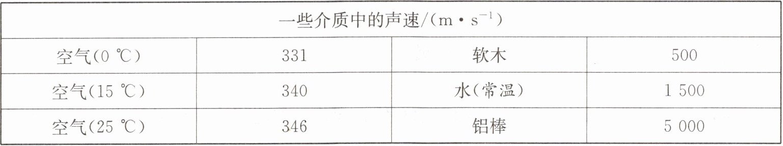 4. 下表是一些介质中的声速,下列说法正确的是(