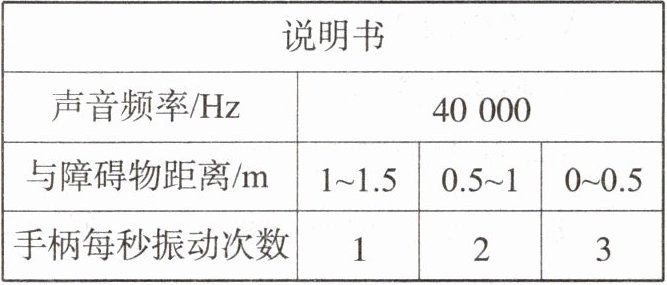 (3)若气温为$15^{\circ}C时导盲杖发出声音后0.005\ s$接收到回声,则它与障碍物的距离是