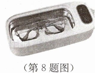 8. 如图所示,将眼镜放在超声波清洗机中清洗时,眼镜上的污垢振动频率大于