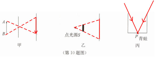10. 请分别作出小孔成像、影子、坐井观天的原理图.
