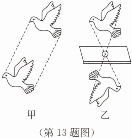 13. 沈括在《梦溪笔谈》中记述到“若鸢飞空中,其影随鸢而移”,图甲为这一现象的示意图;若在窗上开一个小孔,则在室内纸屏上也会看到“鸢的影子”,还会呈现“鸢西则影东”的现象,如图乙所示.“鸢西则影东”描述的现象叫