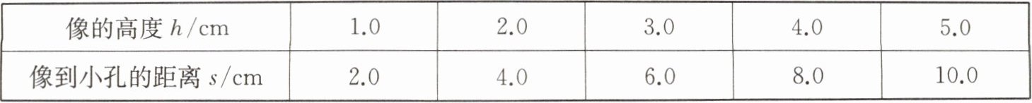 |像到小孔的距离$ s/cm $|2.0|4.0|6.0|8.0|10.0|