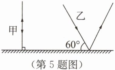 5. 如图所示,甲、乙两条光线射至界面并被反射,由图可知甲、乙两条光线的反射角分别为(