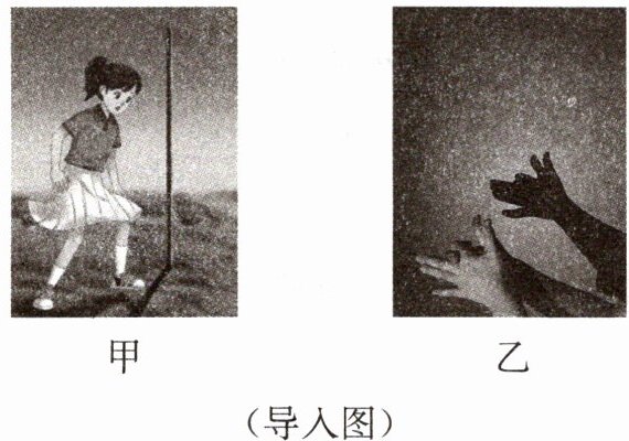 2. 如图乙所示,做手影游戏,改变手形,试着形成像老鹰、小狗、孔雀等动物的影子.手影为什么会随手形的变化而变化?