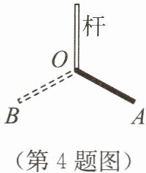 4. 无云的晴天里,某同学在操场上竖立一根直杆,地面上 $ OA $ 是这根杆在太阳光下的投影,过了一段时间后,影子的位置移到了 $ OB $,且 $ OA = OB $,如图所示.$ AB $ 所指的方向是(
