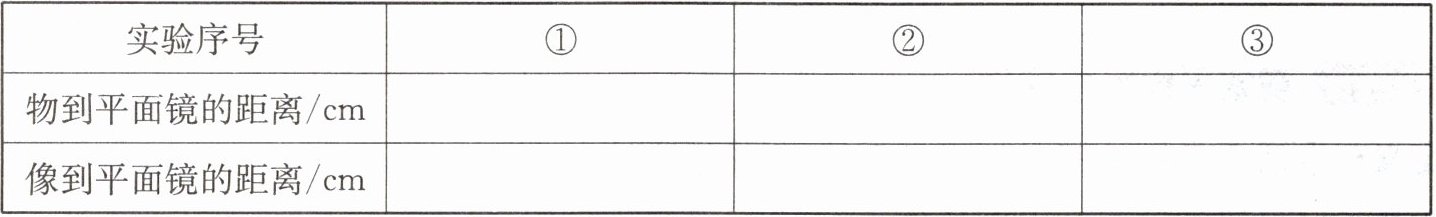 找到像的位置后,在方格纸上标出棋子A和B的位置,多次改变棋子A的位置,重复上面的实验.测量物和像到平面镜的距离,并把数据记录在表格中.
