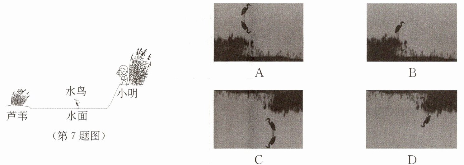 7. 如图所示是小明使用照相机拍摄水鸟照片的情景.若将拍摄的照片正放,则下列照片最符合实际的是(