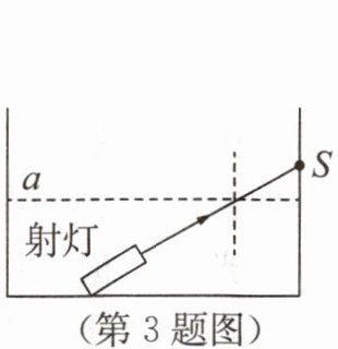 3. 如图所示,水池底部有一个小射灯,当池中无水时,岸上的人观察到池壁上的 $S$ 点被照亮,当池中水面达到 $a$ 时,人眼观察到池壁上 $P$ 点(未画出)被照亮,则下列说法正确的是(