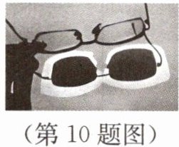 10. 如图所示是一副眼镜放到太阳光下,眼镜到地面的距离在一倍焦距以内,在地面上观察到的情境,由此可以判断镜片是(