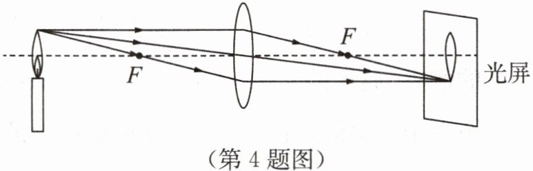 4. 如图所示,将点燃的蜡烛放在距凸透镜10 cm处时,在另一侧距凸透镜10 cm处的光屏上出现了一个与烛焰等大的清晰的像.若保持物距不变,更换一个焦距为8 cm的凸透镜后,要想在屏上出现清晰的像,下列操作可行的是(