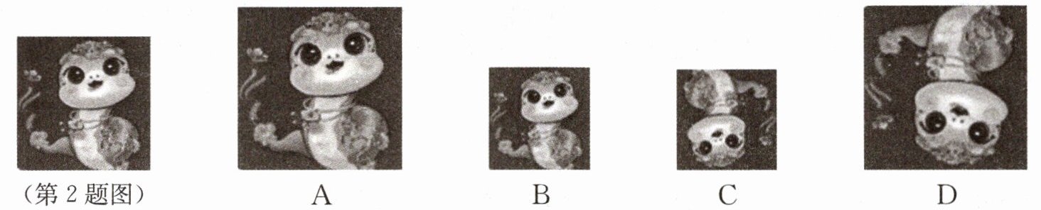 2. 如图所示是一个卡通蛇形象.当凸透镜(焦距为10 cm)与“蛇”的距离为8 cm时,透过透镜看到的像(